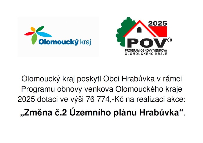 Úvod > Rozvoj > Projekty (dotační tituly) > Poskytnutí dotace Olomouckým krajem na akci: Změna č.2 Územního plánu Hrabůvka